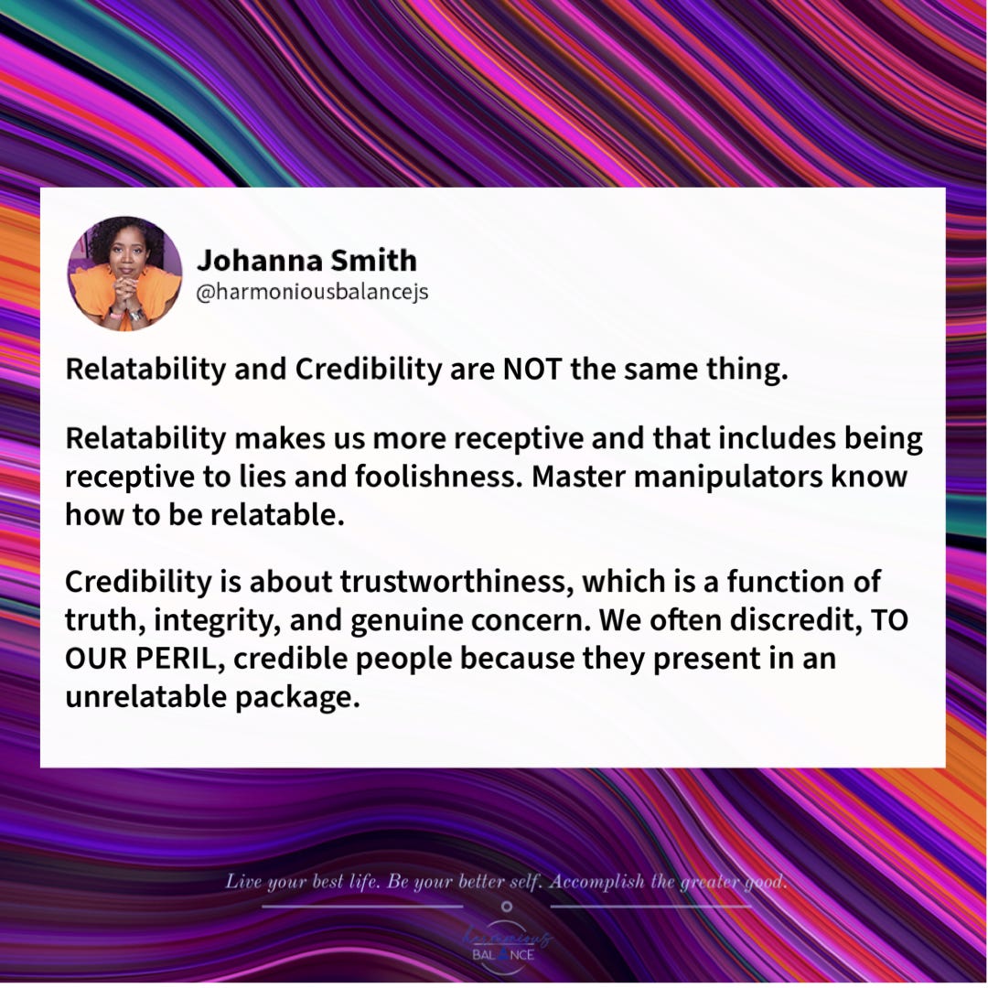 In closing, I think an honest mistake in all of this is that we conflate relatability and credibility. But they are not synonymous. Believe me when I say I understand where the distrust and skepticism come from. At the same time, I know that shutting people out and shutting people down goes against the cause of inclusion. If someone superficially different chimes in on something seemingly outside of their wheelhouse, I suggest we dig a bit deeper and probe on their actual credibility. If their credibility turns out to be questionable, then we have a case for gatekeeping. Otherwise hyper-focusing on the superficial keeps us in the vicious, unequal, divisive cycle that we all seek to be rid of.